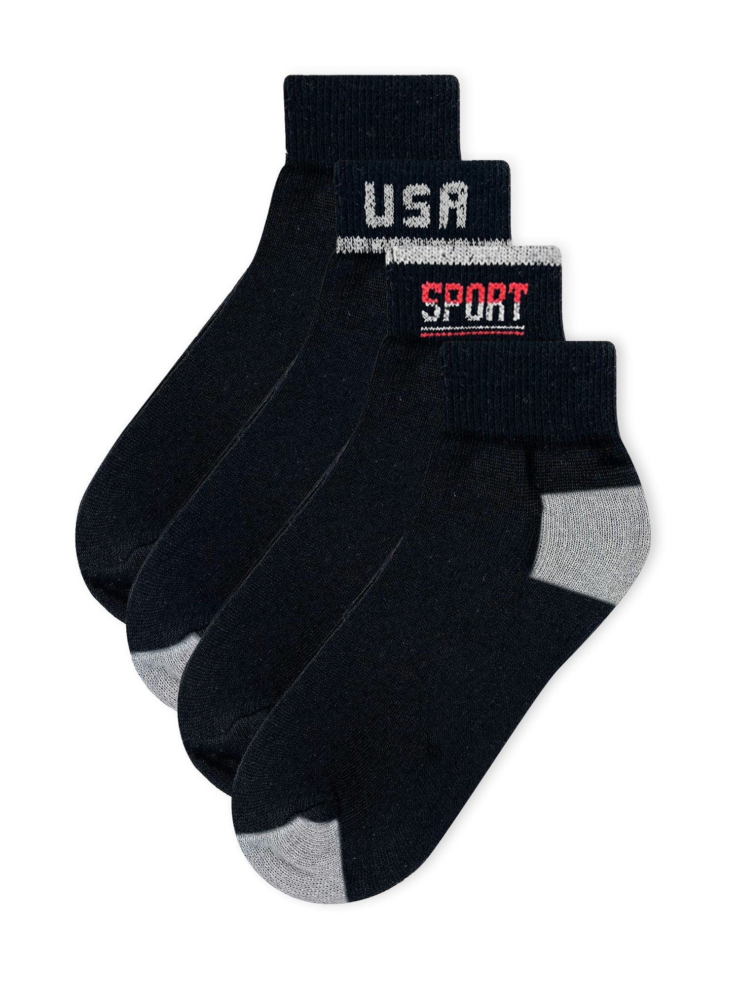 Sold in case of 20 dozen (240 pairs or 60 4-Packs), one size/color per case. 80% Cotton 17% Polyester 3% Elastane. Cotton socks in 4-packs available in multiple sizes.